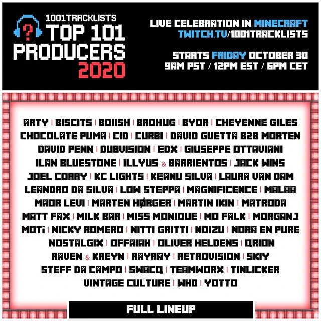 1001tracklists Drops Stacked 50 Artist Lineup For Top 101 Producers Minecraft Celebration - A huge thank you to david guetta, laidback luke, sunnery james & ryan marciano, don diablo, brohug, lucas & steve, dbstf, keanu silva, curbi, chocolate puma.