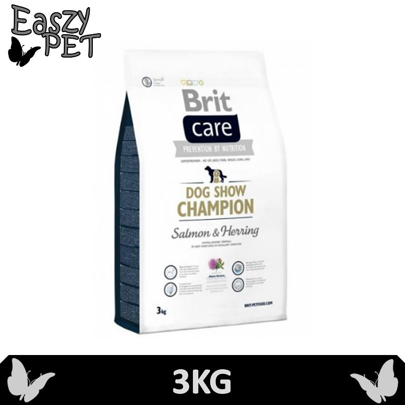 Brit Care Dog Show Champion Losos Ze Sledziem Sucha Karma Dla Doroslych Psow 1kg 3 Kg 12 Kg Karmy Suche Karmy Petsmile Sklep Zoologiczny Dla Wymagajacych - Hipoalergiczna formula z lososiem i śledziem dla doroslych psow, by utrzymac psy wystawowe w bialko surowe 26%, zawartośc tluszczu 16%, wilgotnośc 10%, popiol surowy 6,5%, wlokno surowe 2,5%, wapn 1,2%, fosfor 0,9%.