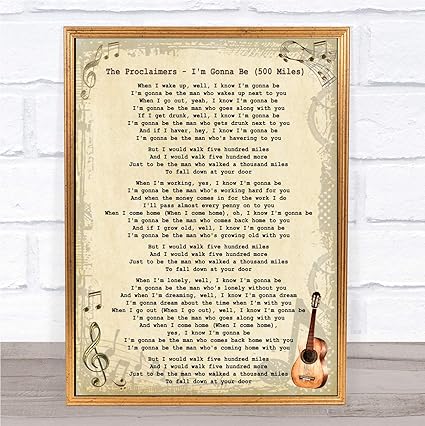 Amazon Com I M Gonna Be 500 Miles Song Lyric Guitar Quote Print Office Products - D7 g you can hear the wistle blow a hundred miles.