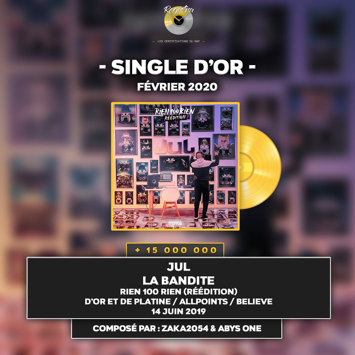 Registra در توییتر Single D Or 15 000 000 Equivalents Ventes Fevrier 2020 Jul La Bandite Rien 100 Rien Reedition D Or Et De Platine Allpoints - Jxdn) — la di die.